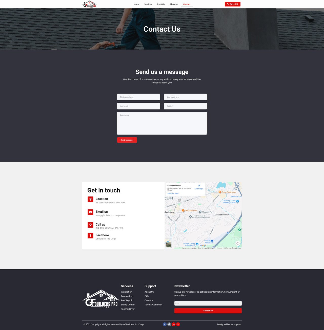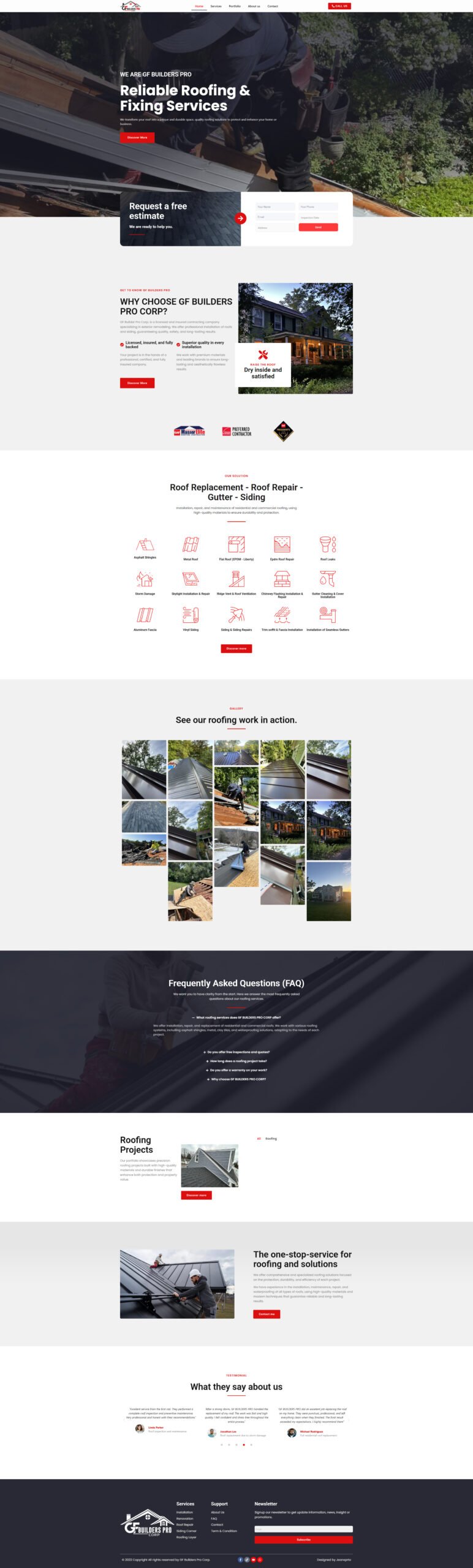 Con un diseño moderno y profesional, la página permite a los usuarios explorar su portfolio de proyectos, leer sobre garantías y procesos de trabajo, y solicitar cotizaciones gratuitas de manera rápida y eficiente. Además, con secciones dedicadas a las preguntas frecuentes y un formulario de contacto intuitivo, el sitio asegura una excelente experiencia del usuario y facilita la conversión de visitantes en clientes.: gfbuildersprocorp.com