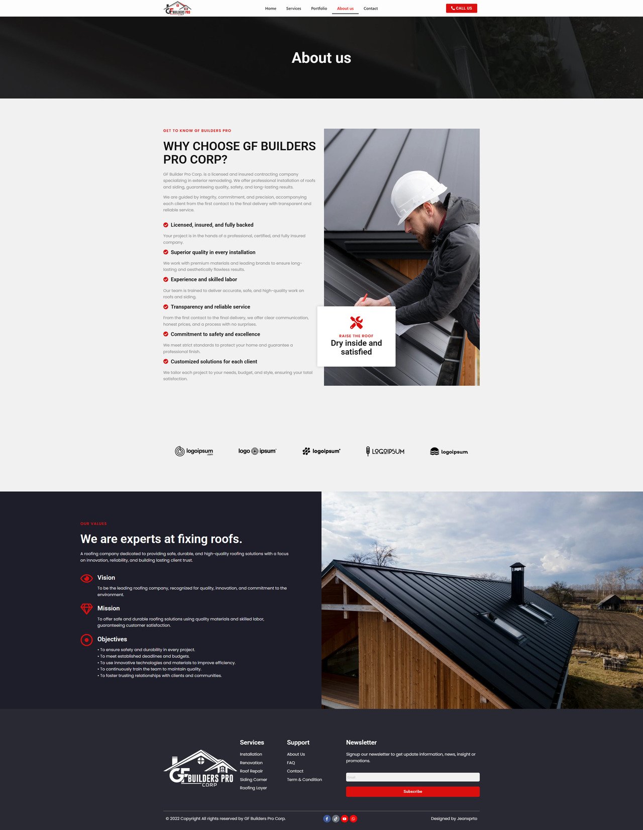 Un sitio moderno y funcional que refuerza la credibilidad de la empresa, facilita la conversión de visitantes en clientes y resume con claridad las capacidades de la compañía en trabajos de techado y remodelación.